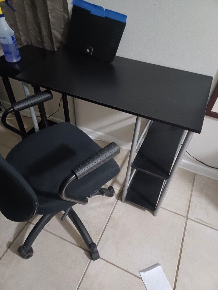 36 in wide, 30 in height. 20 in deep. chair reclines and adjust height up and down. Do not ask if available!! Ikea desk Desk and chair together 60 bucks