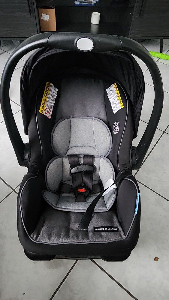 The Graco SnugRide 35 Lite Elite is a lightweight infant car seat designed for babies from 4-35 lbs and up to 32 inches. It features a 4-position adjustable base with a level indicator for easy and accurate installation, and offers a one-step secure connection to Graco strollers. * Car Seat has been deeped clean and disinfectant properly.