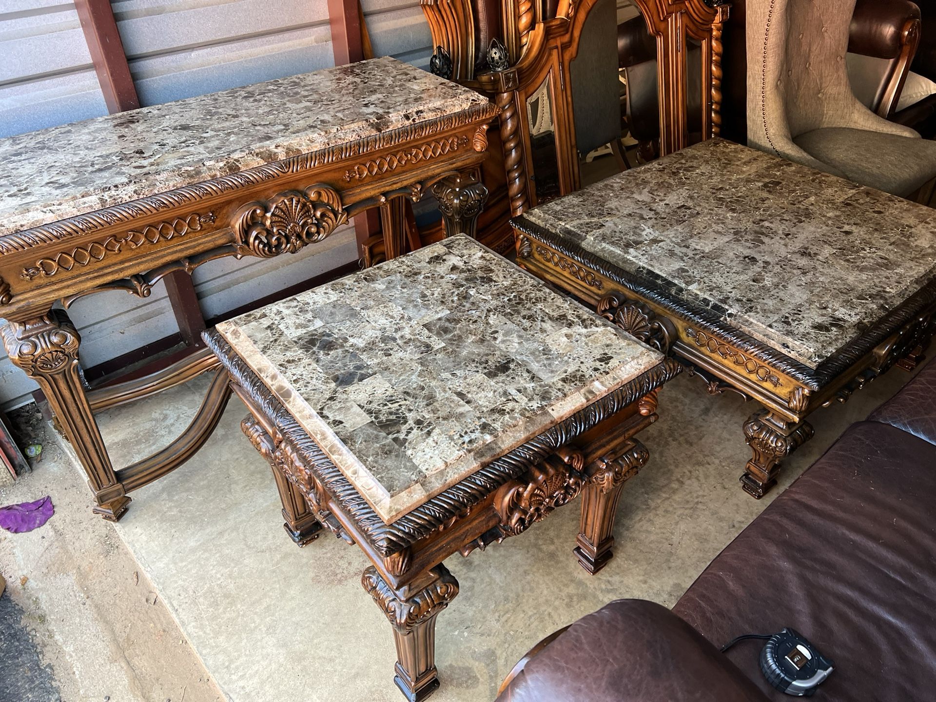 Coffee table 350. End table 199 sofa table 350. Marble top crazy heavy. Available for sale too room set, table, chairs, coffee table, living room set, coffee table, accent chair, bedroom set, china cabinet, hunch, side table, dining room table, diningroom set, DININGROOM SET, Dining Room set, sofa, love seat, livingroom set, painting, executive desk, coffee table, sofa table, console, dinette, dinette set, accent chairs, painting, bar s