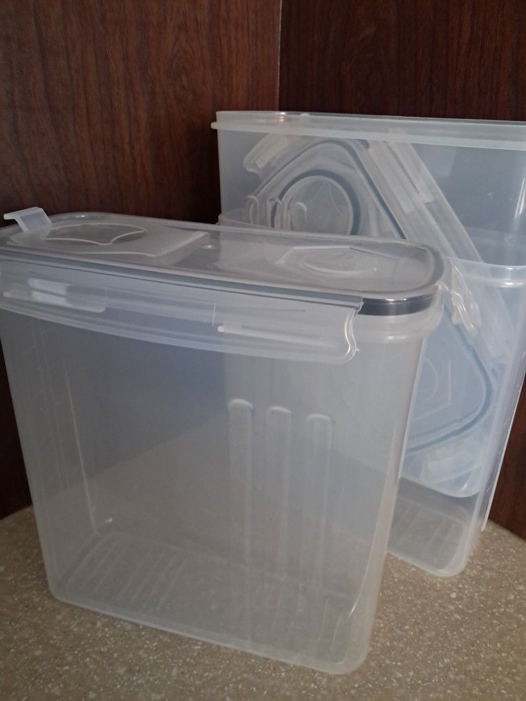 Cereal Storage Containers, a total of nine. Clean no cracks or staining. $10.00. No Shipping