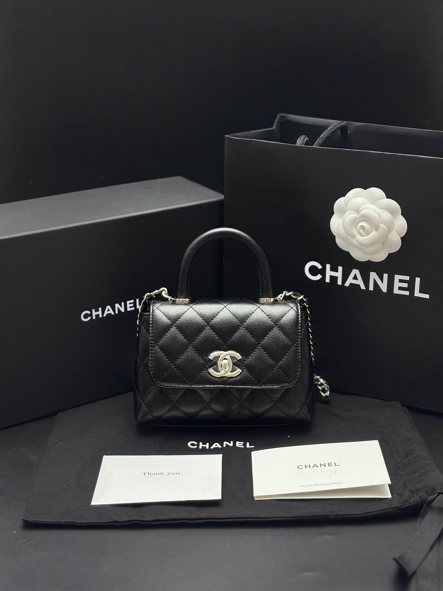 New Chanel 26C Nano Coco Top Handle Flap Bag β Black Caviar with Light Gold Hardware