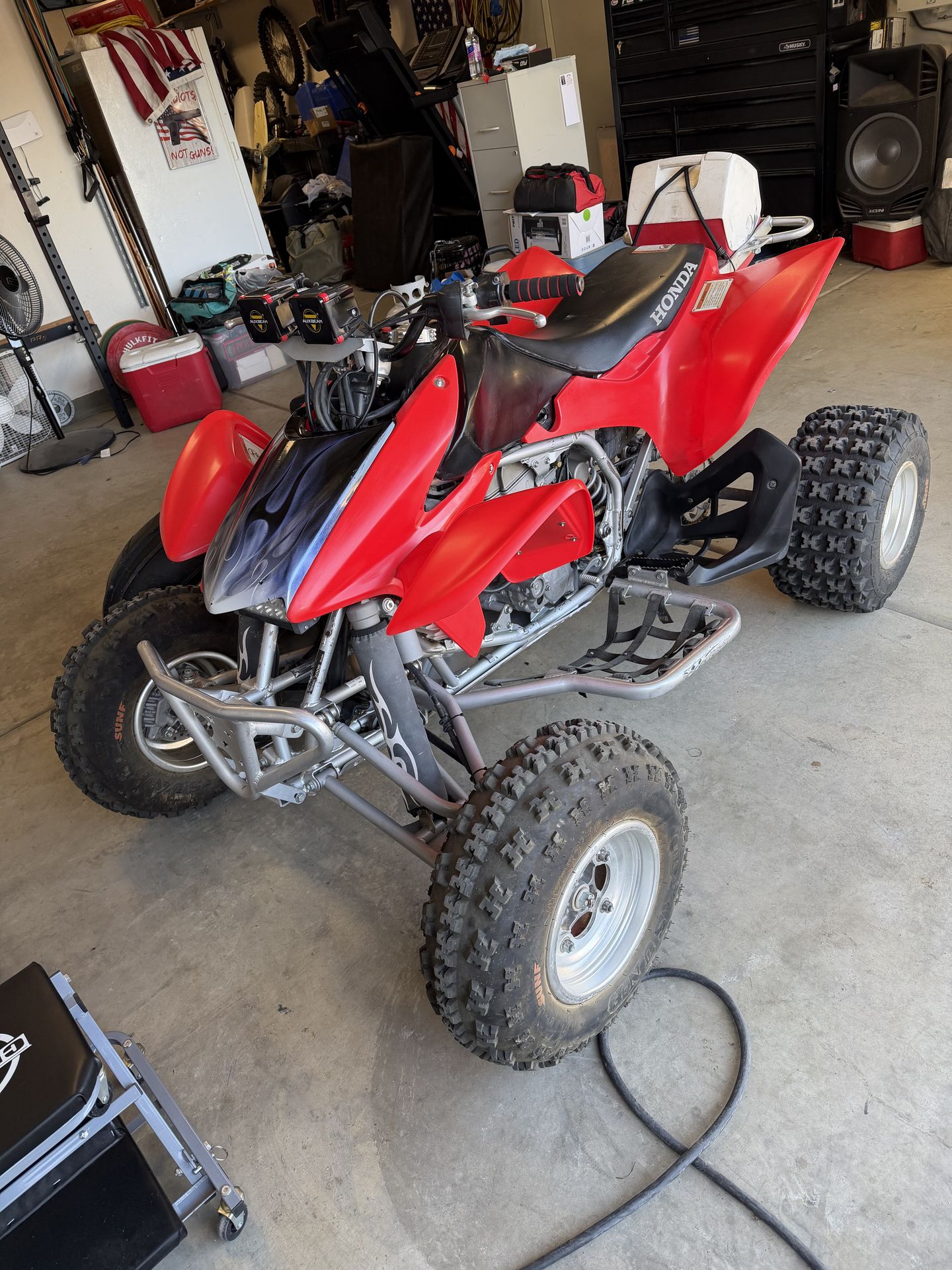 2006 TRX450ER electric start, has HRC kit, +2 lonestar A-arms and swing arm, 2” wider rear hubs, nerf bars (have new webbing for them) 6 pack cooler rack, LED lights. Comes with paddles and dirt tires, dirt tires have 3 trips on em. Asking $4500 OBO CASH ONLY NO TRADES!!