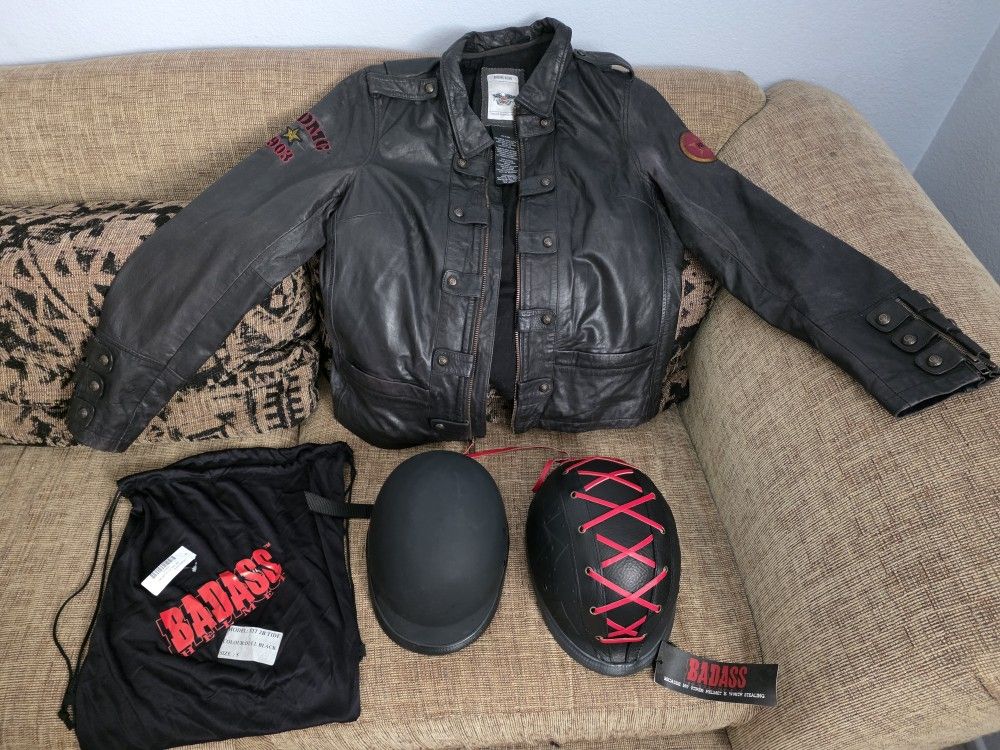 Harley-Davidson Women’s Soft Leather Jacket (Size S/M) Model: 97140-13VW • Genuine Harley-Davidson riding jacket • Soft goatskin leather • Heavy-duty hardware & snap details • No rips, tears, or major wear • Clean inside + all zippers work perfectly • Goes for $149+ online This is a high-quality riding jacket with real protection — not just a fashion piece. ⸻ Badass Fit 2B Tied DOT Helmet (Corset Style, Size S/M) • DOT-certified (not a novelty helmet) • Red corset-style lacing • Lightweight, comfortable, and stylish • Interior padding is clean and intact • Retails new for $259.99 One of the most popular and best-looking half helmets on the market. ⸻ Simple Matte Black Helmet – Size S • Lightweight half helmet • Adjustable chin strap • Good condition with a few light surface marks • Perfect backup or passenger helmet