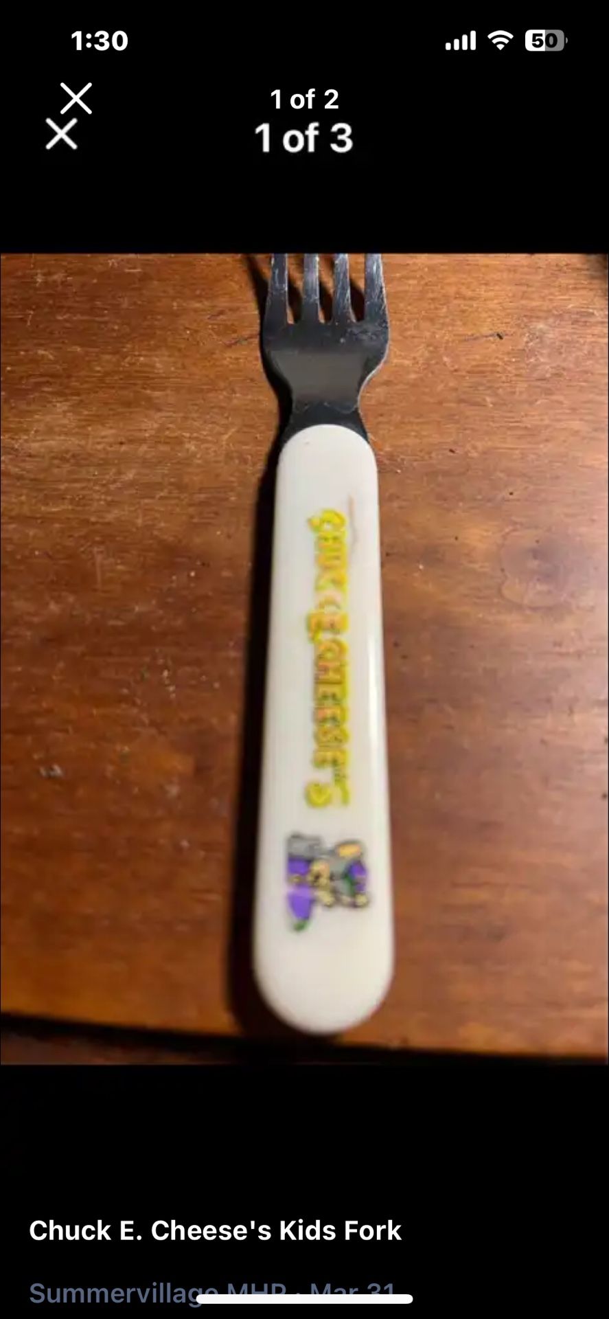 Stainless steel with white plastic handle with Chuck E. Cheese written on it. Cash or Venmo pick up in Summerville in good condition.