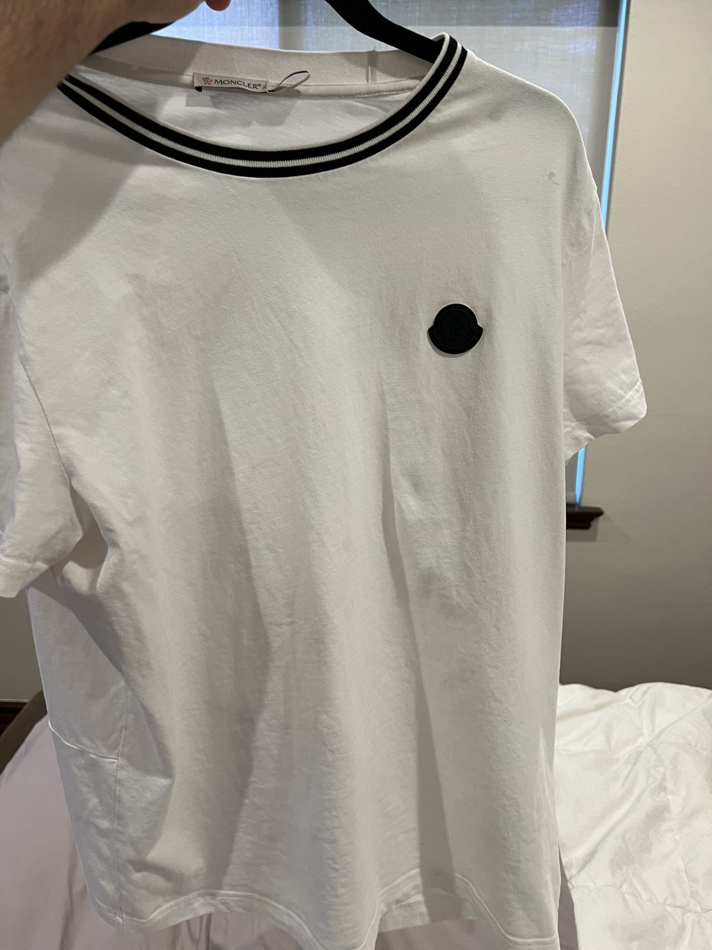 Men white moncler t shirt with black logo. Purchased for $499. Worn one time. Size medium.