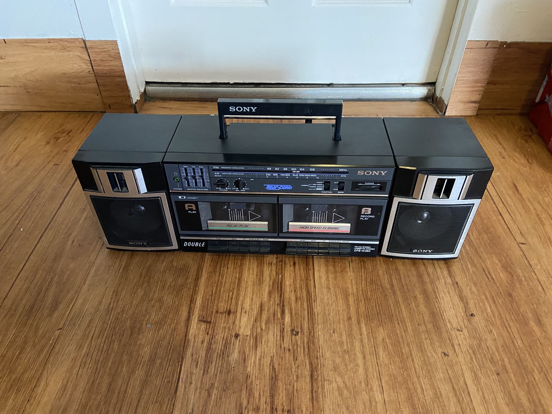 Sony cfs-w360 fm am stereo cassette boombox double dual dubbing cassette radio vintage. Works perfect