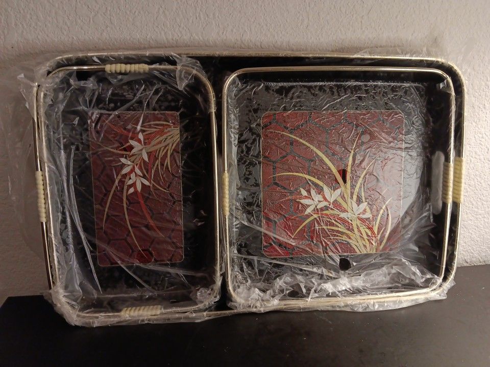 NEW VTG 3pcs Royal Japanese Lacquerware Nested Tray Platter Set.