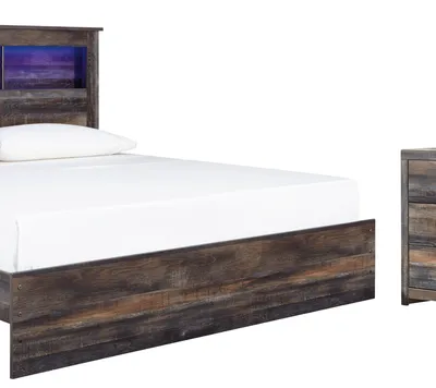 We offer No Credit Needed Programs, Layaway, Fast Delivery or even Same Day Delivery for a fee! We also accept Cash, Credit Card, Venmo, Cash App, Zelle in stores! This king-size panel bookcase bed, dresser and mirror is a refined take on barn board beauty. Its complex, replicated wood grain showcases hints of burnt orange and teal tones for a sense of weatherworn authenticity. Three open cubbies lined with a dimming LED light strip keep bedtime reads top of mind. The dresser with six smooth-gliding drawers lined with faux linen laminate and industrial dark-tone hardware complete this rustic and industrial style bedroom. Mattress and foundation/box spring available, sold separately. Call/Text us at 571-462-7992 Buy Online on our website at JMDFurniture.com or Unlike other stores, we have stores on DMV! Visit Our Physical Locations! Here are all of our addresses. JMD Furniture 2346 Iverson St. Temple Hills MD 20748 JMD Furniture 6611 Marlboro Pike. District Heights, MD 20747 JMD Furniture 7702B-D Richmond Hwy. Alexandria, VA 22306 JMD Furniture 4053 Silver Hill Road Suitland, MD 20746 The Hours are Monday to Saturday - 10 am to 8 pm Sunday - 10 am to 6 pm Explore our diverse furniture and mattress collection! Discover Living Room Sets, Bedrooms, Dining Room Sets, Sectionals, Sofa Sets, Sofa Love Seats, Double Pillow Top Mattresses, Rugs, Carpets, Wall Art, Lamps, Dressers, Chests, Nightstands, Beds, Sleigh Beds, Platform Beds, Headboards, Rails, Box Springs, and a wide selection of other items