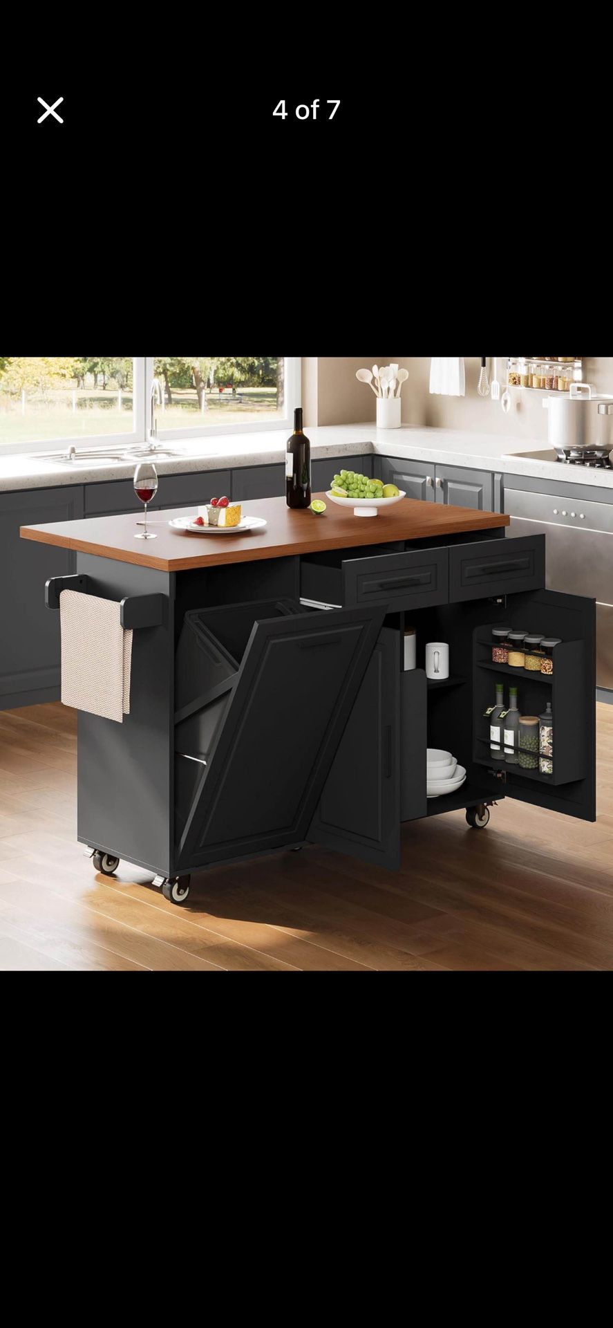 Modern Kitchen Island with Storage - Rolling Island Cart on Wheels with Power Outlet
