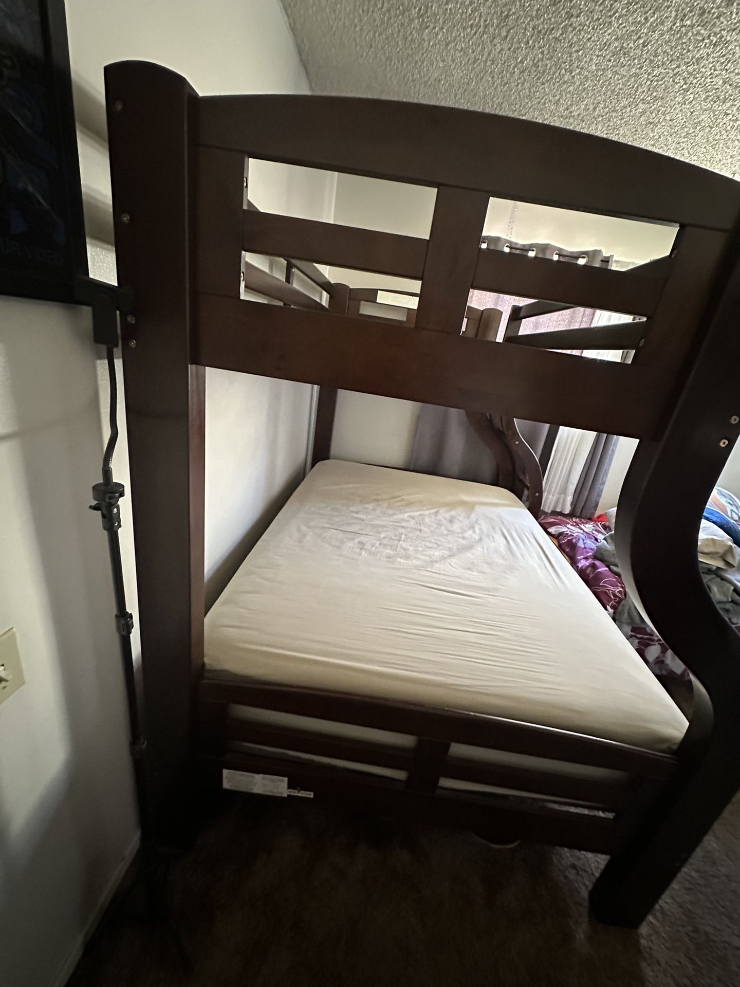 Bunk Bed comes with two beds included, also with the base board on the top one and on the bottom one wood planks. Bunk Bed is made out of 100% wood so it’s strong and firm.