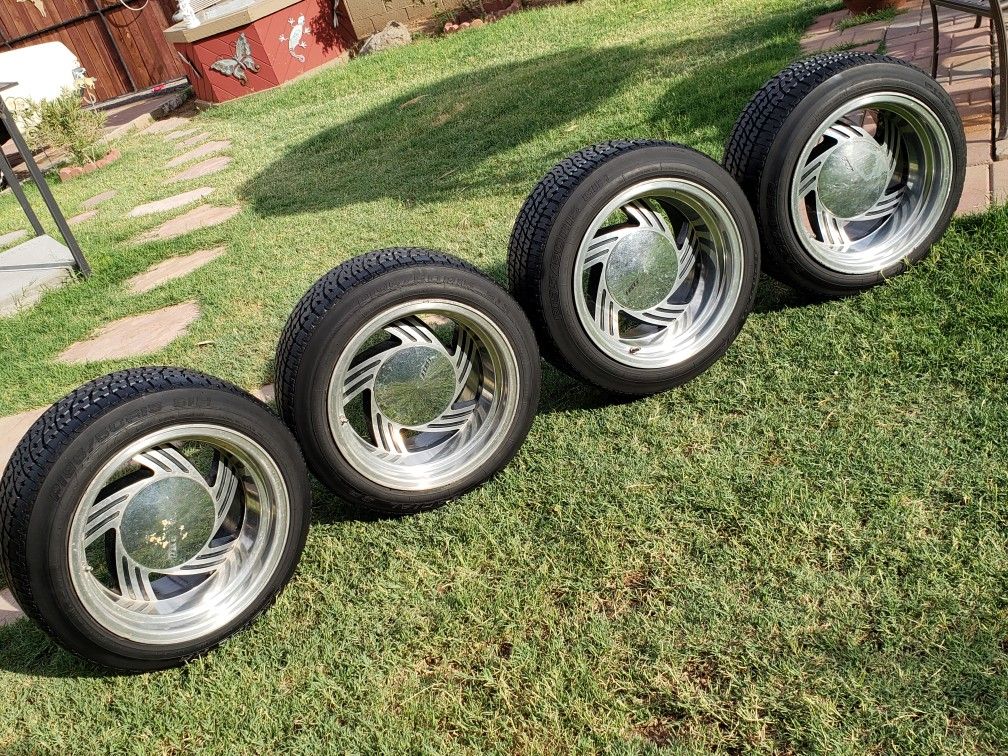 15x9 6 Lug Old School Rims. GREAT FOR A MINI TRUCK. Chevy, Nissan, Mazda. Tires are no good.
