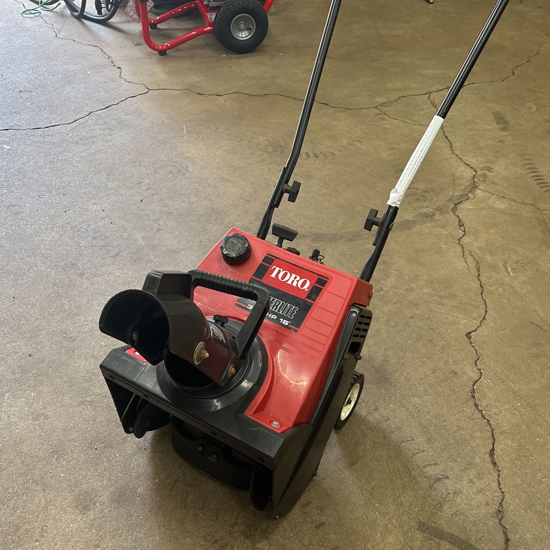 This machine has had a complete tune up done. Rebuilt the carburetor, new fuel filter and spark plug. We also installed new paddles , new scraper and new belt. This is a 2 cycle 3.5 hp machine. Pull start only . 16 inch clearing path. Certified by Chicago lawnmower 4228 w montrose. Family owned since 1960 .