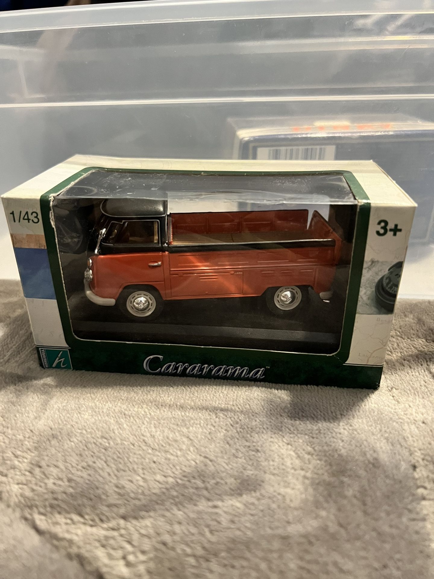 Cararama Volkswagen T1 Pick Up 1/43 Pick up is in excellent condition. Back of the boxes do not have clear plastic over the open window of box, they were produced this way. These trucks are part of the Cararama 251 series.