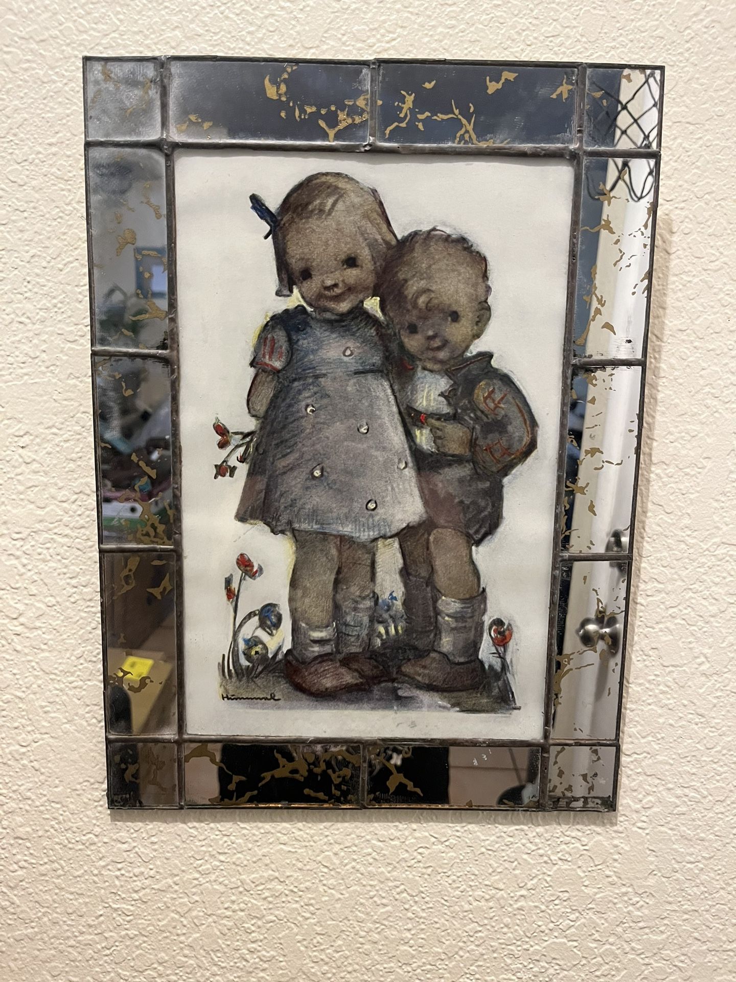 I live in Mesa at University and Stapley Drive 85203 Please read all of the information in the description and look at all of the pictures please thank you Serious buyers and 24 hour pick up thank you This is a vintage hummel picture that has stained glass around it. It is 14 1/2 inches tall and 10 1/2 inches wide. I’m selling it for $5 Please check out my other items and follow me. Thank you.