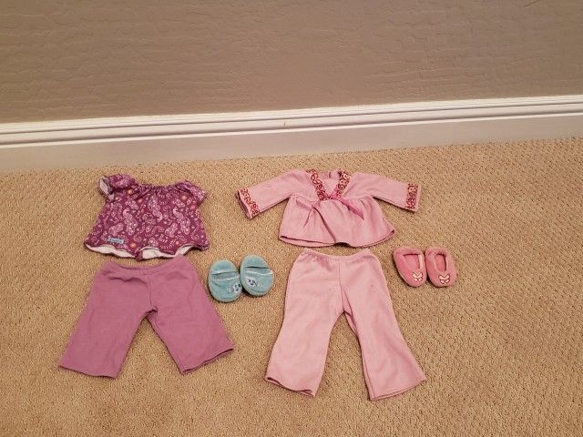 American Girl purple peacock pajamas with slippers - $15 American Girl Julie's pink pajamas with slippers - $20