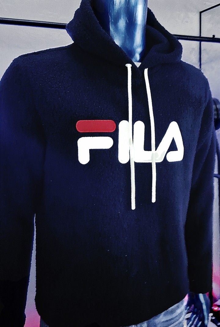 This FILA fleece hoodie delivers a cozy, athletic look with a soft brushed finish that feels comfortable without being heavy. Finished in classic navy blue with an embroidered FILA logo at the front, it has that plush, slightly fuzzy texture that gives it warmth and character while keeping the design clean and wearable. - Brand: FILA - Department: Women - Size: Medium - Color: Navy Blue - Fabric: Brushed fleece knit - Fit: Regular - Design: Pullover hoodie with drawstring hood - Logo: Embroidered front logo - Vintage: No - Country of Manufacture: China - Chest (pit to pit): approx. 21 inches - Length: approx. 24 inches An easy everyday hoodie that works well layered or worn on its own. Comfortable, lightweight, and finished with classic FILA branding, this piece is perfect for casual wear with a relaxed, sporty feel.