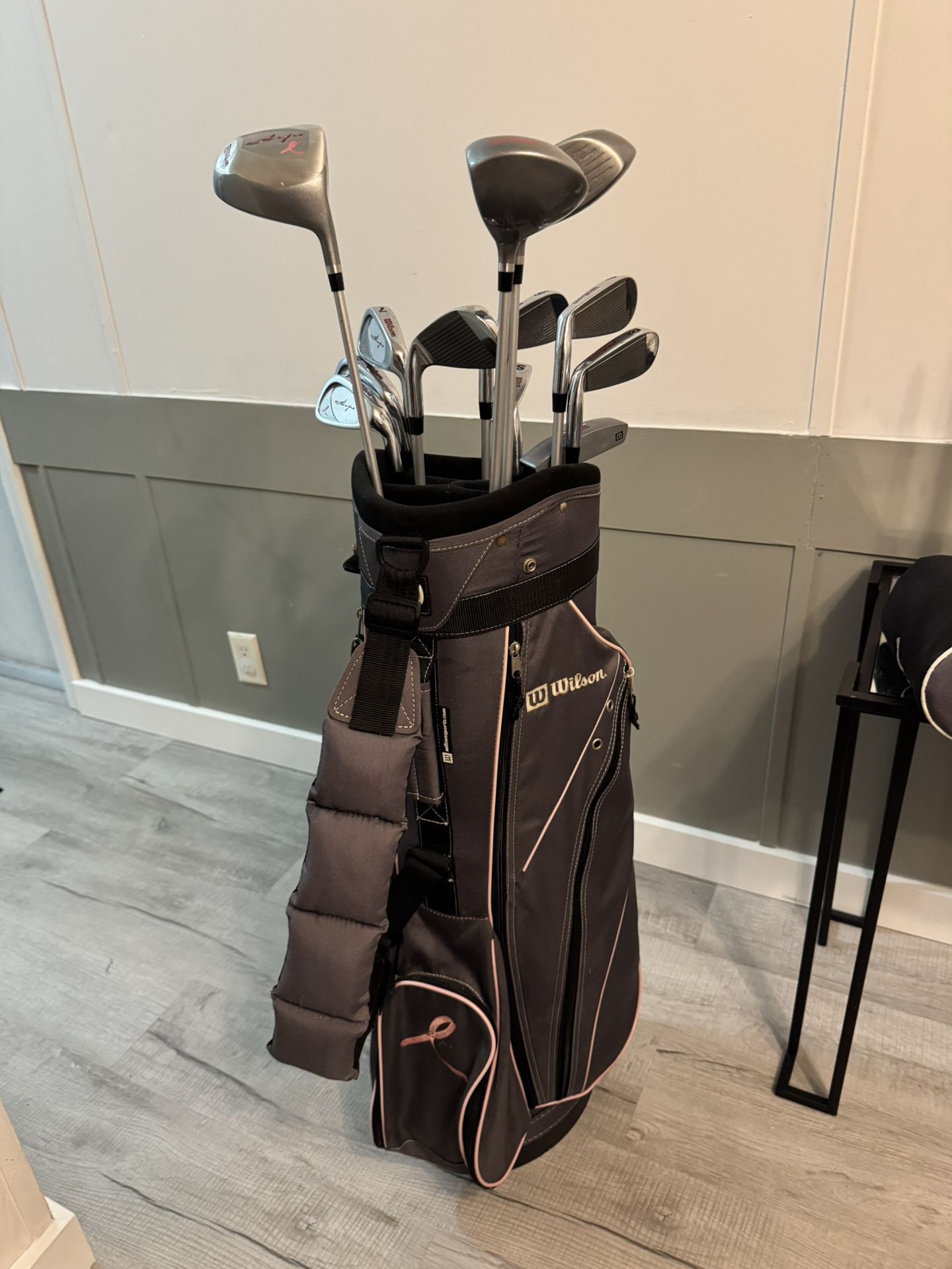 Have a set of golf clubs, Wilson, Hope breast cancer edition have a number 3wood, 5 wood,driver,4,5,6,7,8,9,P,S and dyna balance 407 clubs with club bag, asking $100 pick up only