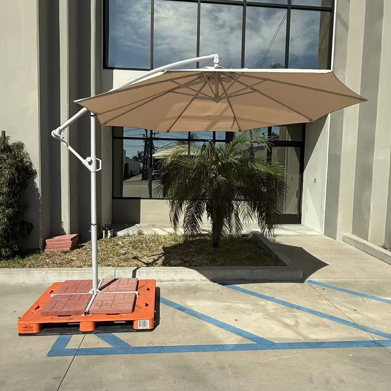 New In Box $65 Each Beige Or Blue Color 10 Feet Offset Cantilever Umbrella With Cross Stand UV Protected Fabric