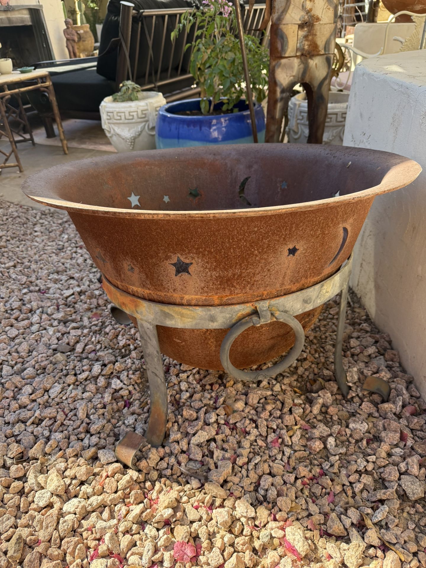 Moon & Stars FirePit w/Stand and Two Ring Handles Dimensions 29 1/2 across. 18 1/2 tall Pickup Location N of Dunlap & Central