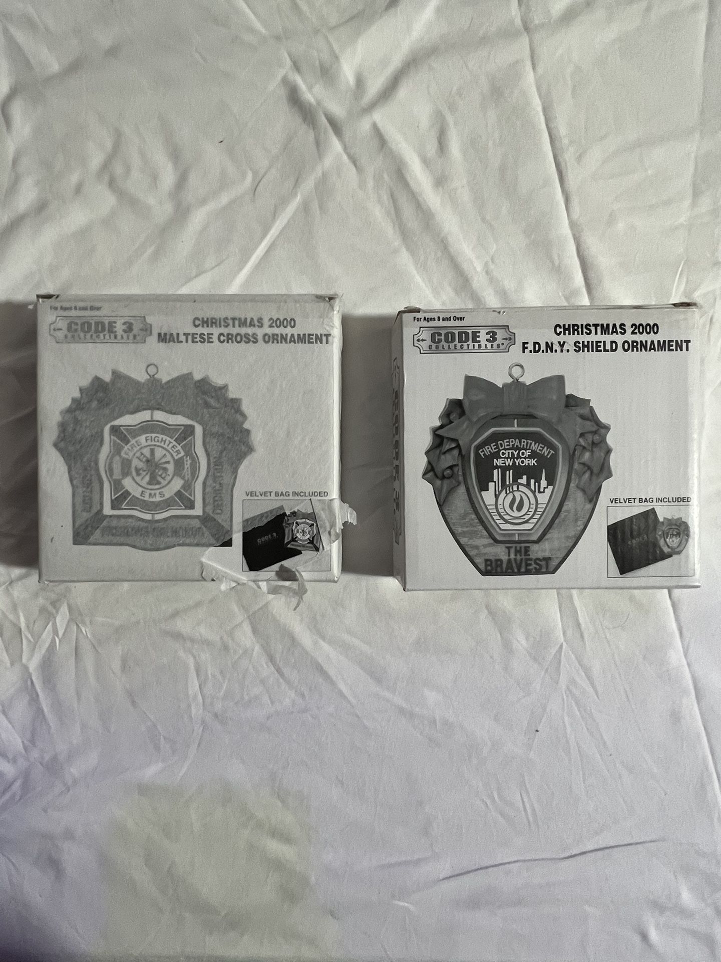 These are brand new never opened Code 3 Collectables FDNY and MALTESE CROSS XMAS ornaments. Both included in price shown. Limited edition originals. Discontinued.