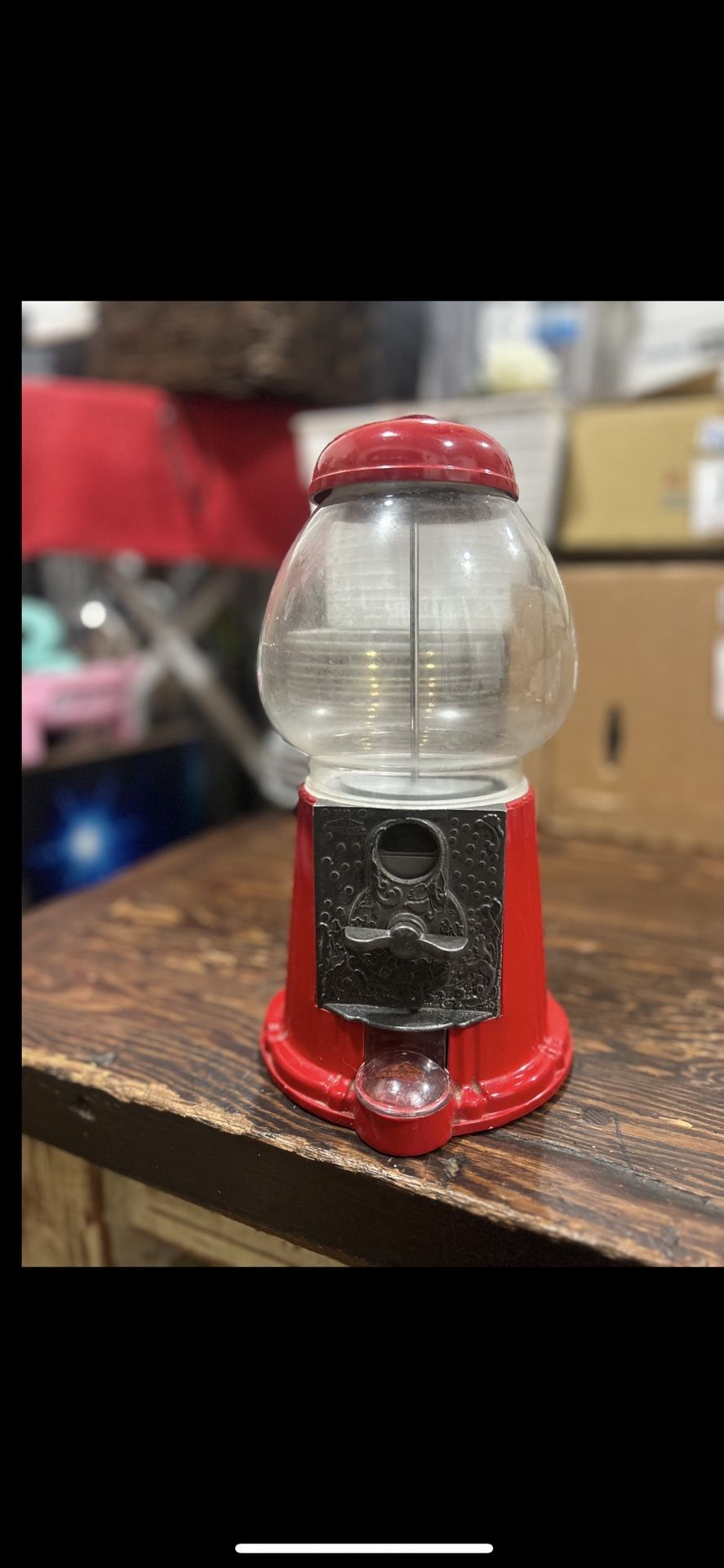 Vintage 1985 11" Tall Carousel Gumball Red Machine Glass