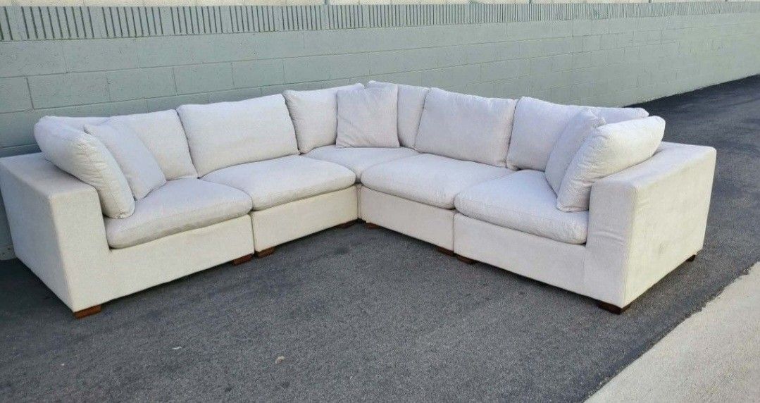 • Thomasville Lowell 5pc sofa • 118" x 118" • Beautiful Heather Gray color • can be rearranged in multiple ways • Purchased in 2024 • Used in Good condition w signs of use • Regular wear from moving • Could use minor cleaning • Removable covers for easy cleaning • pick up in 90723 • Delivery available at fee • Cash Only (No deposit required) • $680 • Final Sale only couch is for sale.