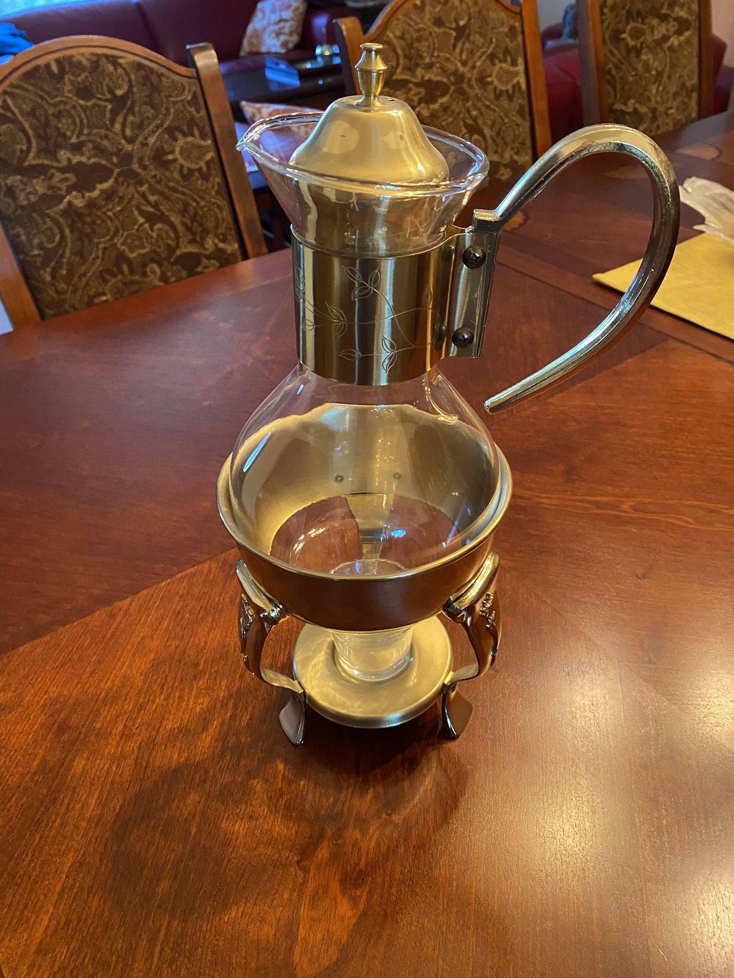 Beautiful Princess house coffee carafe. This is the bronze/gold color. It does not have the tray. Looking to clear out my China cabinet. It’s in wonderful condition. I have the copper colored one as well. They make a nice set for regular decaf coffee. I’m near 56th St. and Thunderbird. See my other offers.