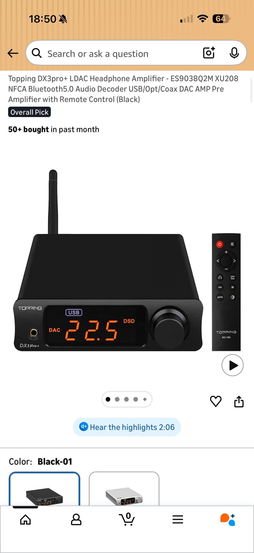 Topping DX3pro+ LDAC Headphone Amplifier - ES9038Q2M XU208 NFCA Bluetooth5.0 Audio Decoder USB/Opt/Coax DAC AMP Pre Amplifier with Remote Control (Bla