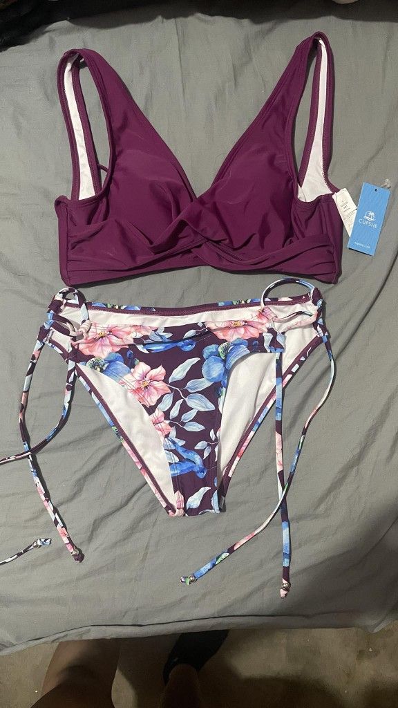 CUPSHE Women's Wrap Top Floral Bottom Bathing Suit Two Piece Swimsuit