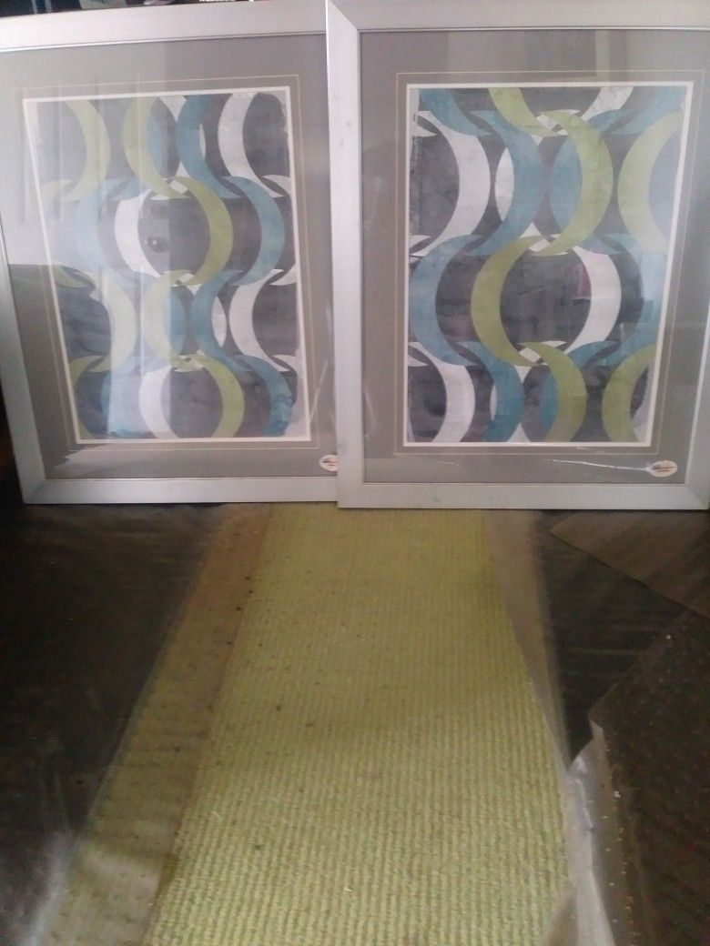 Two Large Pics one Green Rug and Two Green Sheer Curtains