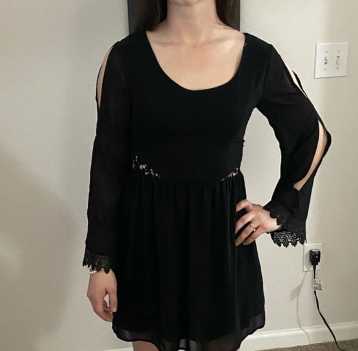 Gothic fairycore black mini dress with lace Size medium Open to offers!