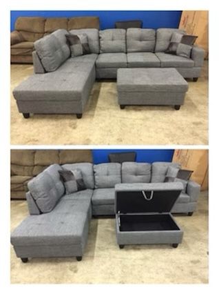 Brand new still in packaging with decorative pillows and storage ottoman included this is display picture Delivery to all areas