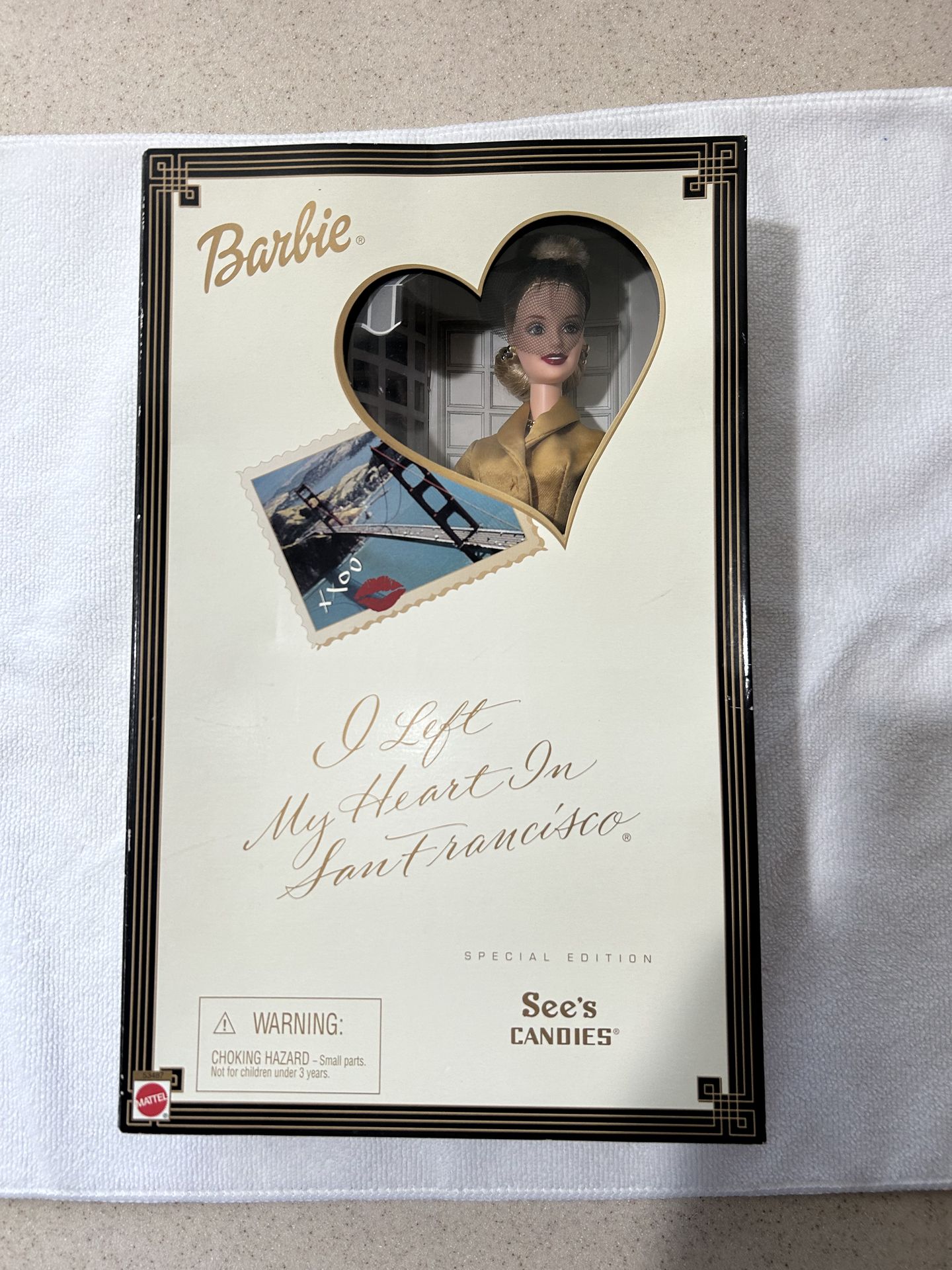 2001 Mattel Limited Edition Barbie See’s Candy ‘I Left My Heart In San Francisco. Box gas Never been opened. Rare doll.