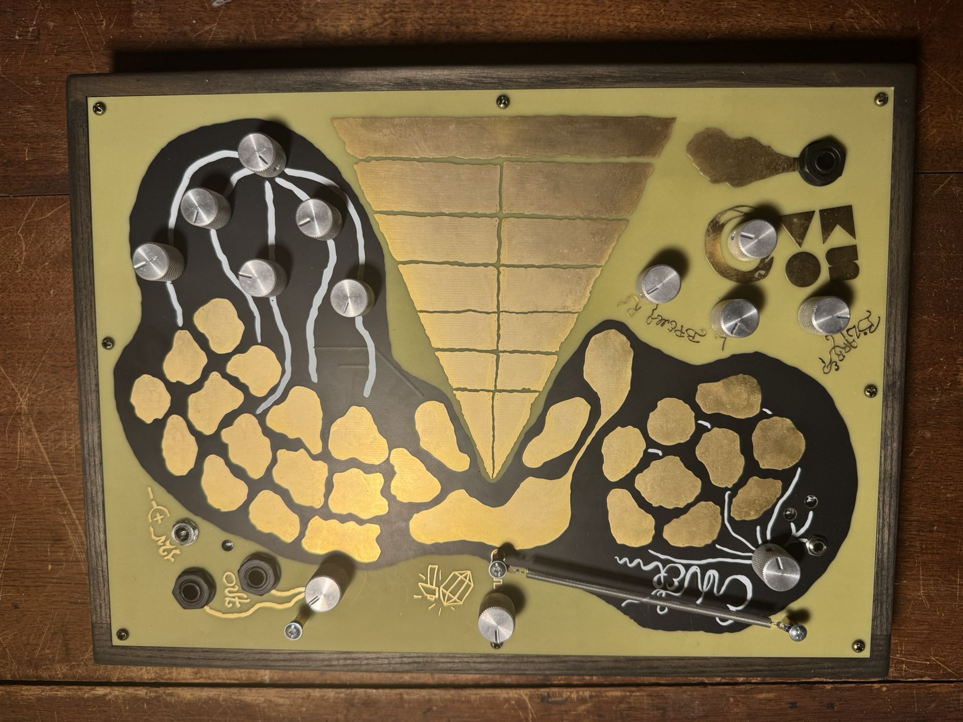 ENNER is a very expressive sound tool that can generate bits, pads, FX, noises, clicks, glitches, but also function as a cool vocal mic with built-in analog FX and much more! A musician with a rich imagination and who’s experienced in playing ENNER can perform an entire exciting gig using just this synth. As an instrument, ENNER is a unique analog synthesizer with the key principle being that all signals that make sound pass through and are managed by your body. Your hands become the central part of the circuitry. Touching different contact pads with different parts of your fingers and palms with different amounts of pressure, letting signals pass through your body defines the mixing, volume, timbre, feedback and other parameters of synthesis. Human skin has much more complex electric properties than we think. Our skin provides not just resistance but also some capacitive properties and even nonlinear dependence of conductivity from current, its direction and time during which the current was applied. All of this affects the sound, making you the key part of the synthesis process. All pots of ENNER are metallic and also function as inputs or outputs. Touching a pot can change not only the parameters but also patch the audio signals. No scratches basically an open box from Russia bought before tariffs which would be half of what it’s worth.