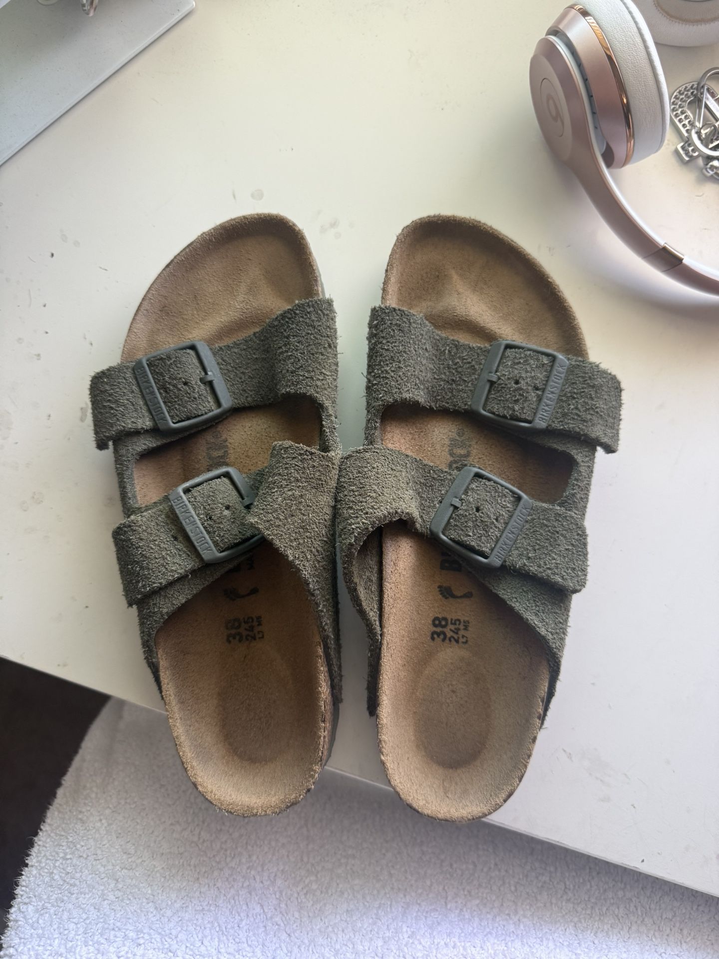 Worn maybe twice, I’m a size 8 and these are a 7.5, I Thought I’d just stick it out but they’re too small haha Army green color suede straps