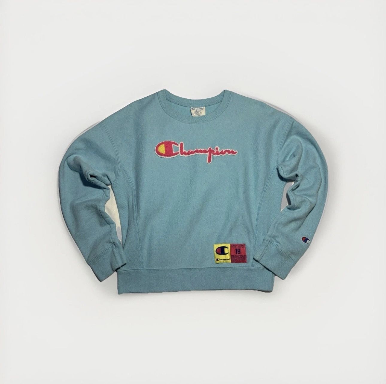 Champion Reverse Weave Sweater Womens Small Blue Pink Pullover Crew Neck