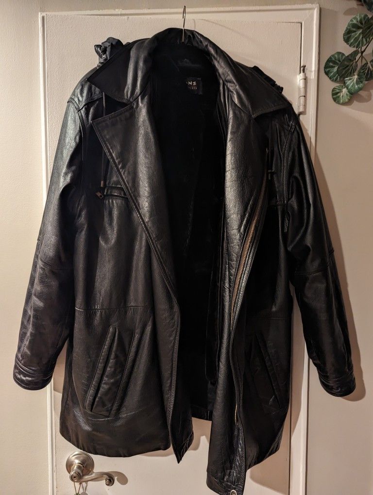 Men's leather jacket - from Wilson's Leather Size: XL Missing belt Detachable hood Inside liner is removable