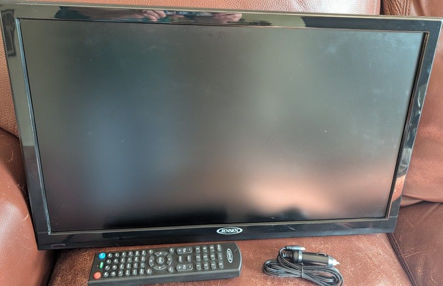 We just removed this working and lightly used TV from our Northern Lite camper. It comes with the remote and new 12v power cable. It works well, but we decided to go to a larger unit. Low power needs makes it good for off grid! Note- It does not have a base so it needs a wall mount or stand. Also, the glare in the first photo is just from sunlight when I took the picture. The screen is free of defects. Model: JTV24DC
