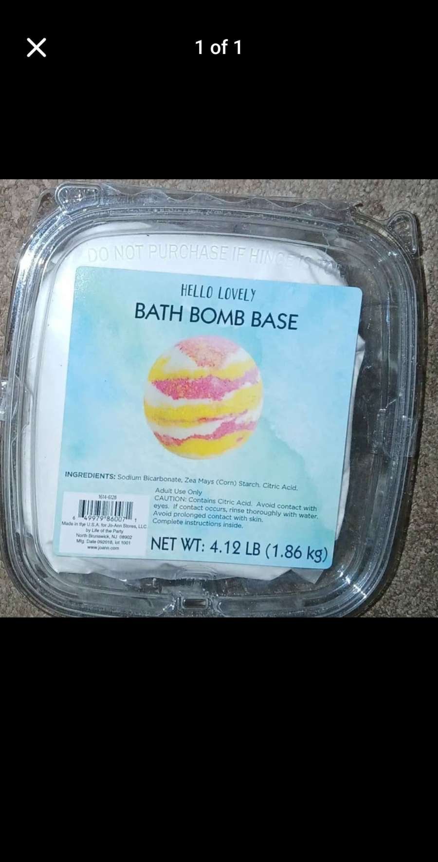 Big 4lb container of bath bomb base by Hello Lovely, new & unopened as shown. Retails $20+ in stores. Pickup on the Westside of Jax in the Marietta/Whitehouse area, 32220 zip.
