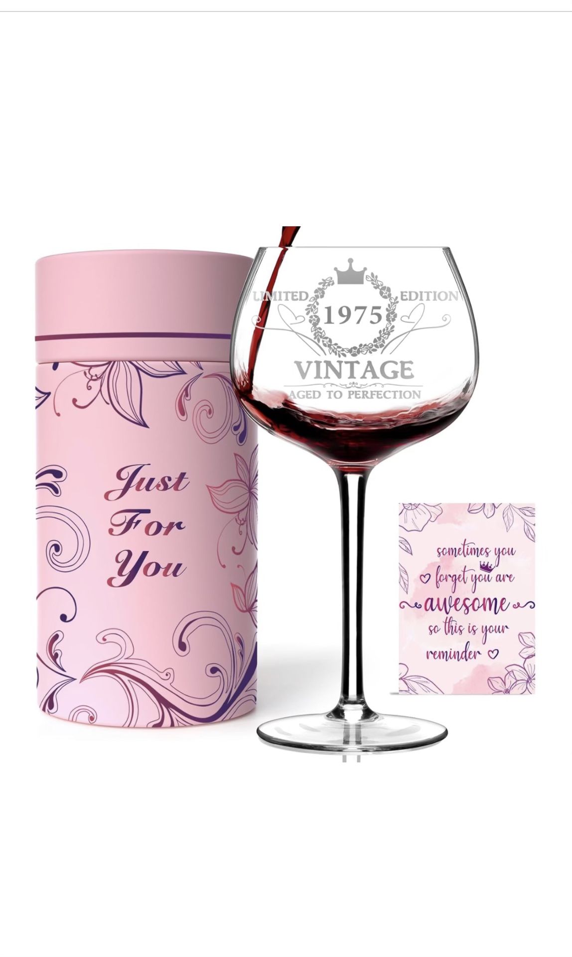 50TH Birthday Gift Vintage 1974 Engraved Wine Glass, Birthday Decoration