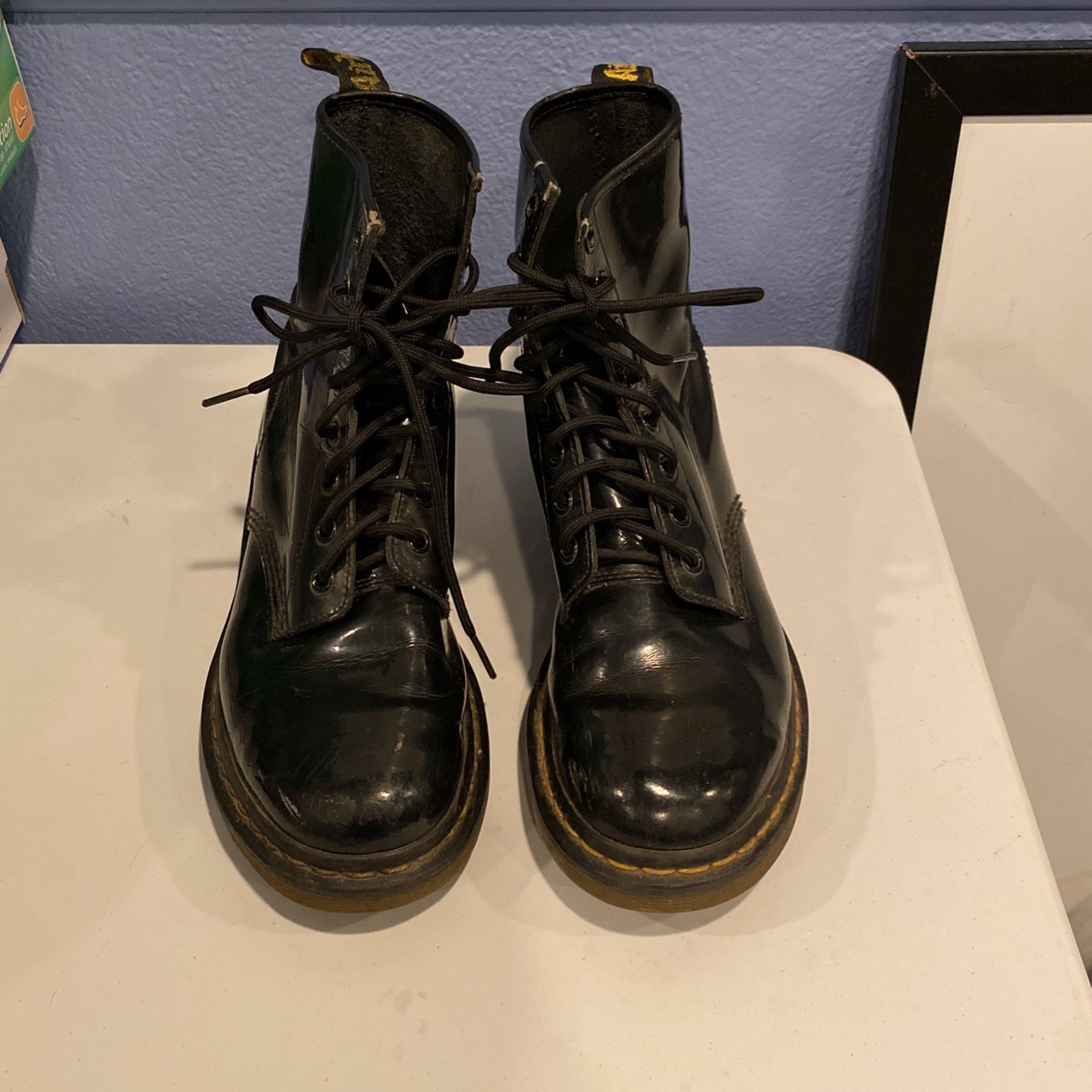 Some superficial scrapes on toes. Other than that in great condition. Black leather women’s boots size 9.