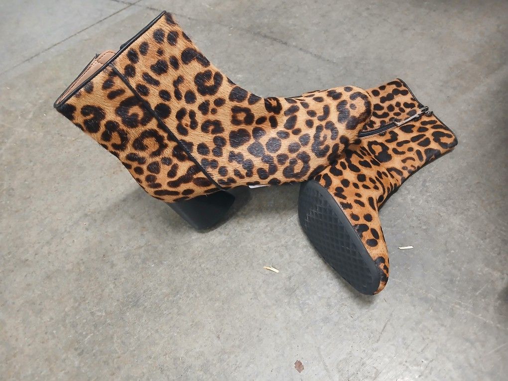 Aerosoles Myla Leopard Print Ankle Boots Women's Size 7.5 Block Heel 2.5"