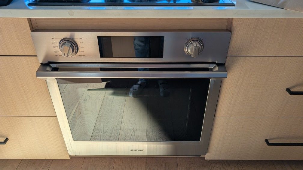 Selling our Samsung 30-inch Flex Duo wall oven—the model NV51K7770SS with the blue-lit knobs, steam cooking functions, and smart touchscreen controls. About 3 years old, works perfectly. We’re remodeling the kitchen and replacing all appliances, so it’s coming out of regular family use. ⭐ Key Features Flex Duo split-oven capability (cook two dishes at different temps) Steam Bake + Steam Roast modes SmartThings app connectivity Digital touchscreen with clock, timer, and cooking modes Glide rack + standard racks Convection baking Self-cleaning cycle Sleek stainless steel finish 👍 Condition Fully functional Very clean interior Normal light cosmetic wear on exterior handle/trim Touchscreen and dials work perfectly No issues, no repairs needed 📦 Why selling? Doing a full kitchen remodel and switching appliance brands. 📍 Pickup Info Easy ground-floor pickup, no stairs. I can help load it into your vehicle.