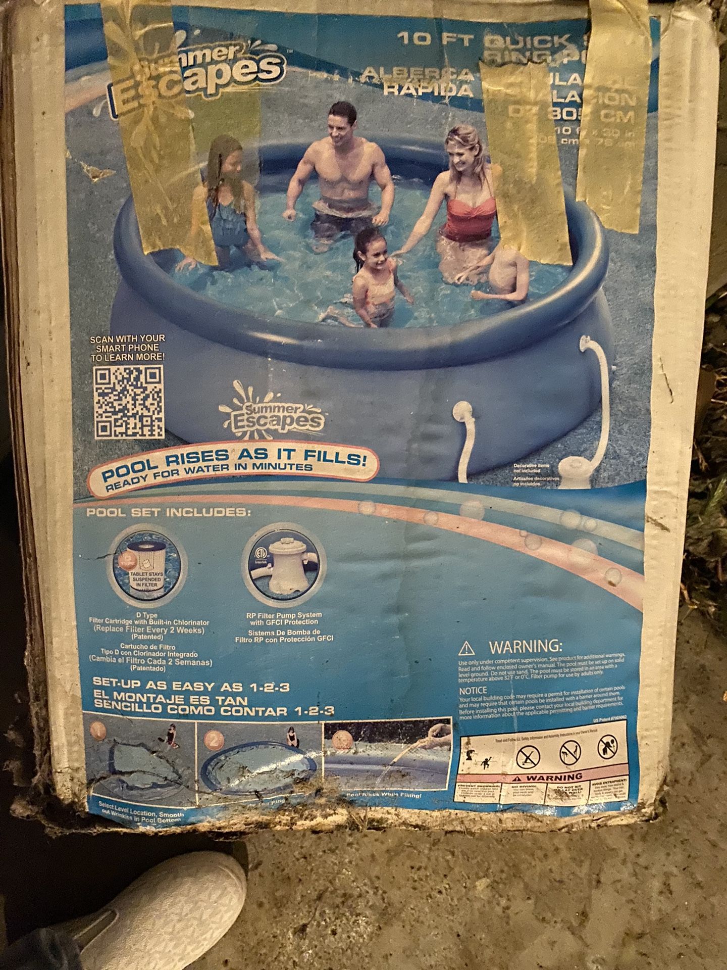 Summer escape 10ftx31” quick setup pool. Open boxed but only used it 2x like new . Decided to buy a bigger one. Filter system included. Will also add pool cover. Pool cover brand new .