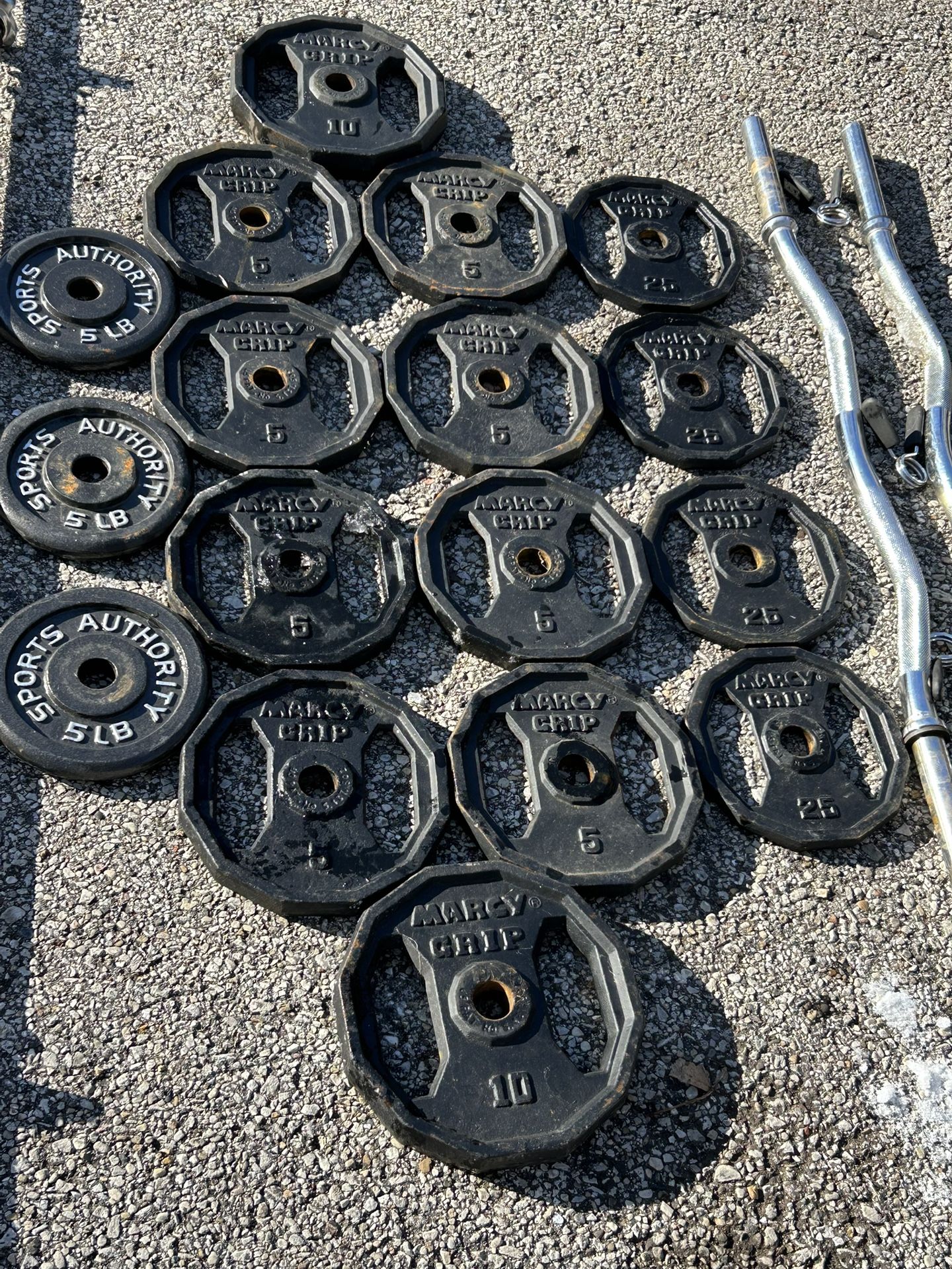 Marcy Grip. Weights 85Lb With 2 Curls Bars One Olimpic Bar