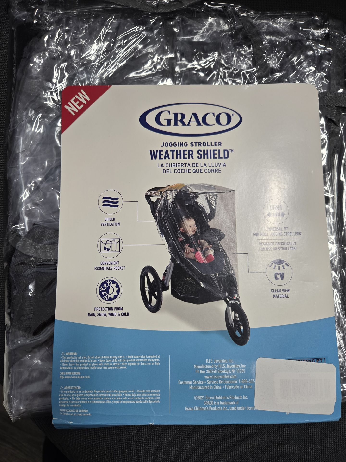 Jogging stroller weather shield. Graco brand. Universal Fit for most jogging strollers. New not in original packaging. Pickup in Oak Cliff area 75211 or Lancaster area 75146