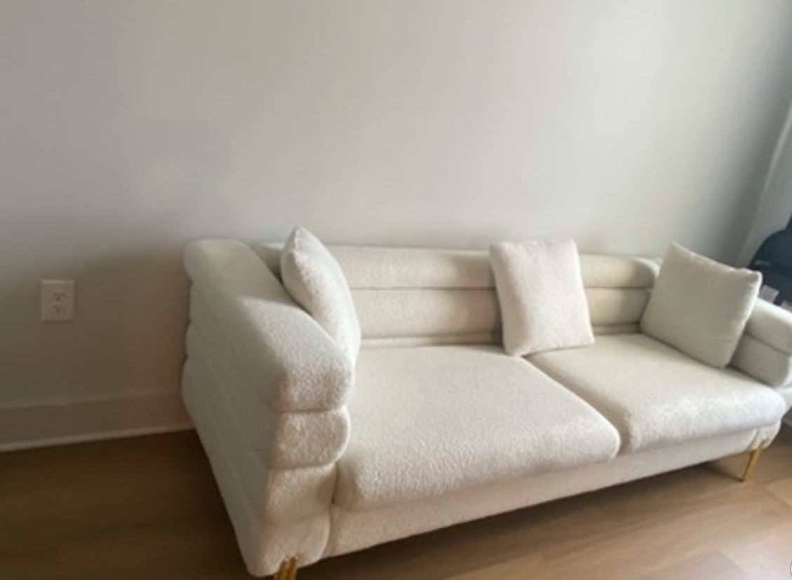 Bouclé cream York Sofa with brushed brass legs 3 pillows included