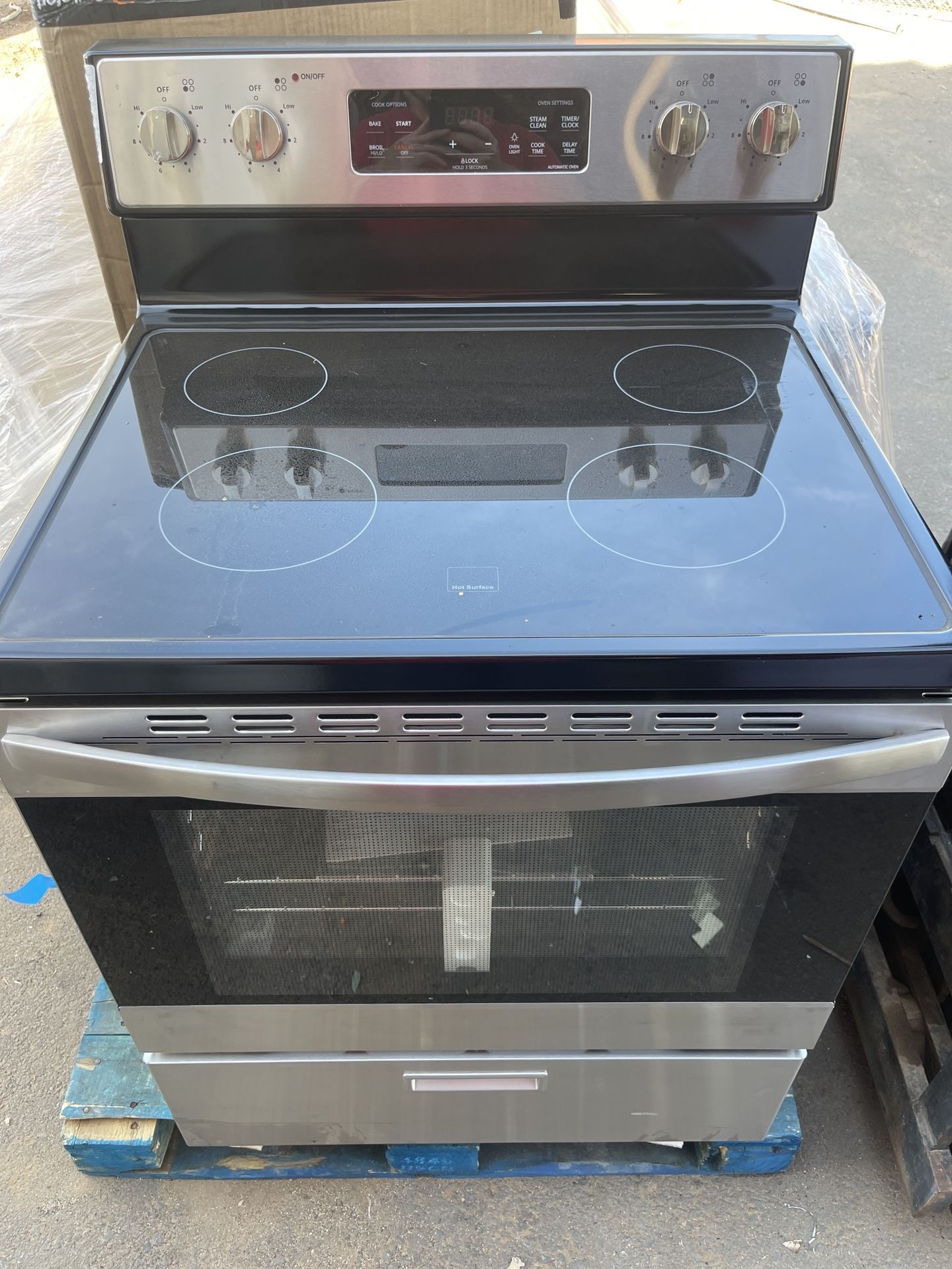 Brand New 30” Kitchen Electric Stove Glass smooth surface Never been used Has two small little dents on one side barely noticeable (look at last picture ) Asking $600 Let me know if you have any questions