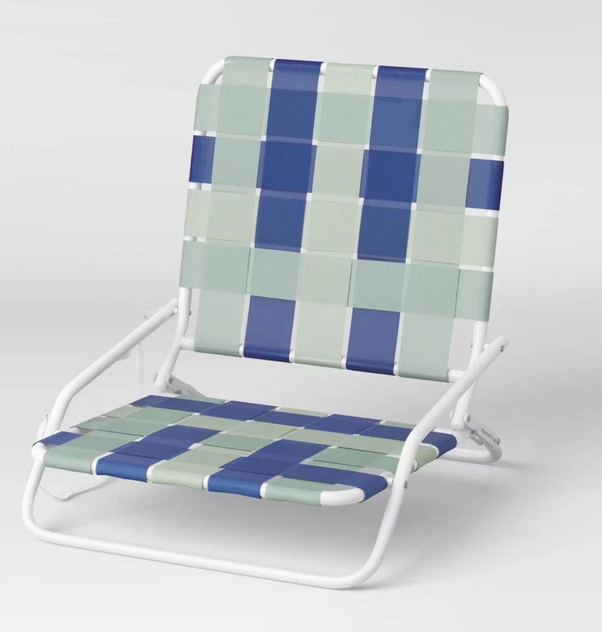 Brand new not used I have three colors shown in pics You can choose yours Webstrap Outdoor Portable Beach Sand Chair Blue - Sun Squad •Webstrap beach sand chair • Metal frame •Foldable design •Adjustable shoulder strap •Weather-resistant Create a relaxing beach setup with this Webstrap Outdoor Portable Beach Sand Chair from Sun Squad. Supported by a metal frame, this beach sand chair features an overlapping webstrap design for a cool look.