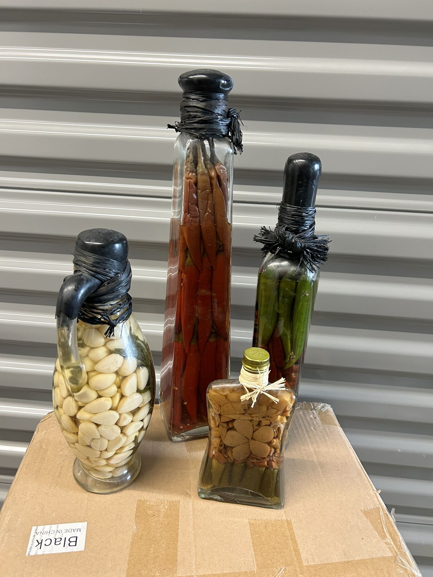 Selling my 4x various pepper/oil kitchen decor items. Well sealed; been used as decorative in my kitchen for 12+ years.
